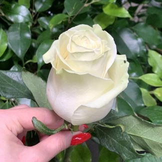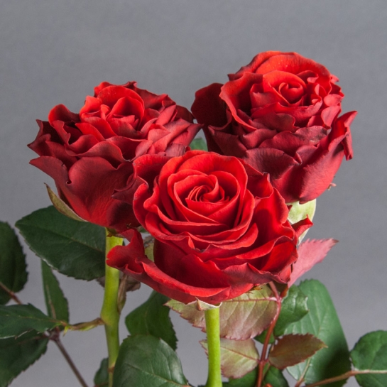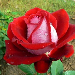 Квіти криваво-червоного (червоно-оранжевого) кольору, розташовані по одному на дуже потужних квітконосах, діаметр квітки близько 10см, з часом вигоряє, але при цьому не втрачає своєї привабливості, пелюстки гофровані. Листя темно-зелене з червонуватим відтінком. Кущ компактний, рясно квітучий.Роза відрізняється оригінальною формою пелюстки. Різьблені і великі можуть бути і яскраво-червоного, і кривавого, і темно-оранжевого кольору. На різних стадіях цвітіння фарбування троянди може переходити на 1-2 тони у темну або світлу сторону. Іноді від променів сонця на пелюстках утворюється темно червоне, майже чорне напилення. Аромат слабкий. Кущ має прямі рівні пагони без шипів, що робить сорт ідеальним для зрізування. Листя середнє, різьблене, темно зеленого кольору.